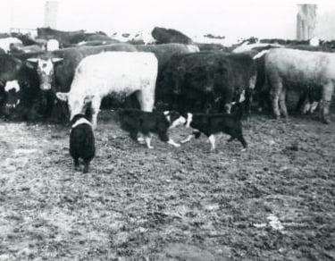In 1952 my grandfather was in the hospital for an extended period. My dad was the oldest son in his family, and at 15 years old he was expected to run the farm while his father was recovering. To help get his chores done, Dad ordered his first English Shepherd from a newspaper ad. A sable female, whom he named "Queenie," arrived in a crate from Iowa on a train. Dad taught her to bring their 15 head of milking cows in from the pasture as he prepared the parlor twice a day. As he would head toward the barn, he would simply tell her "Go get 'em, Queenie" and 20 minutes later she would have the cows up to the door. For the rest of his days, he never went without an English Shepherd on his farm.