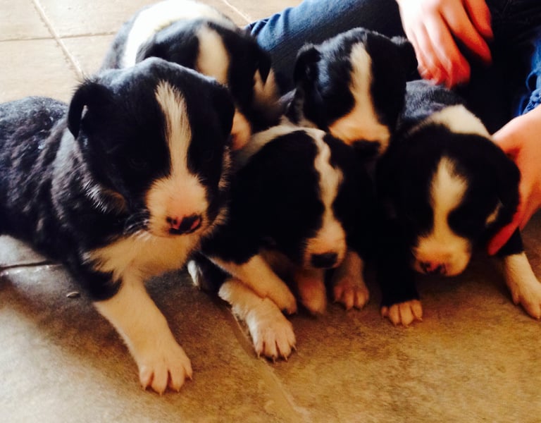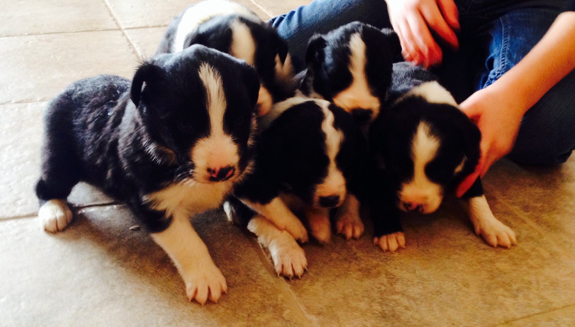 The puppies will be ready to go to their new homes once they are socialized and weaned.